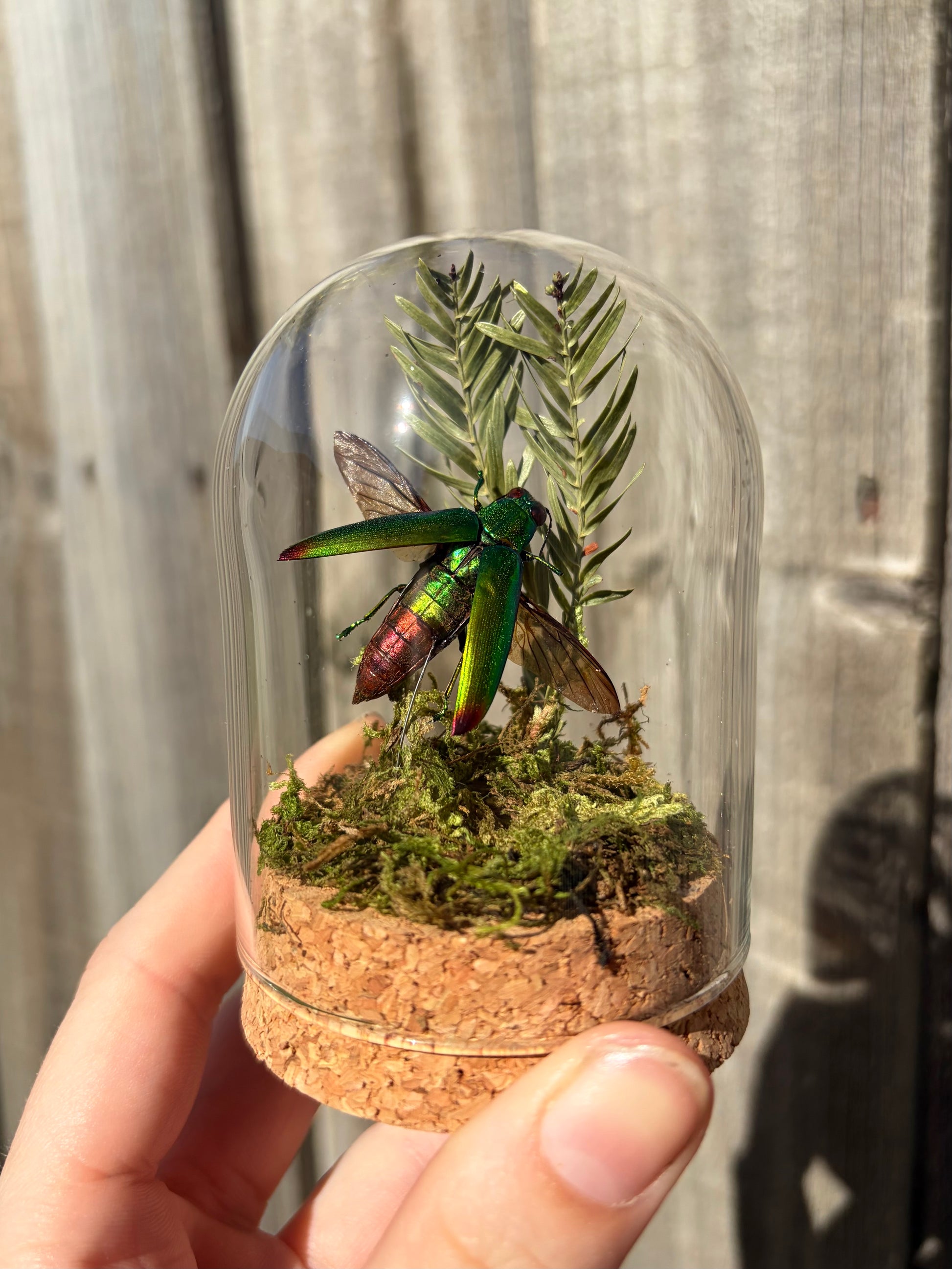 This is a small dome that is perfect for any oddity shelf or small shelf!
