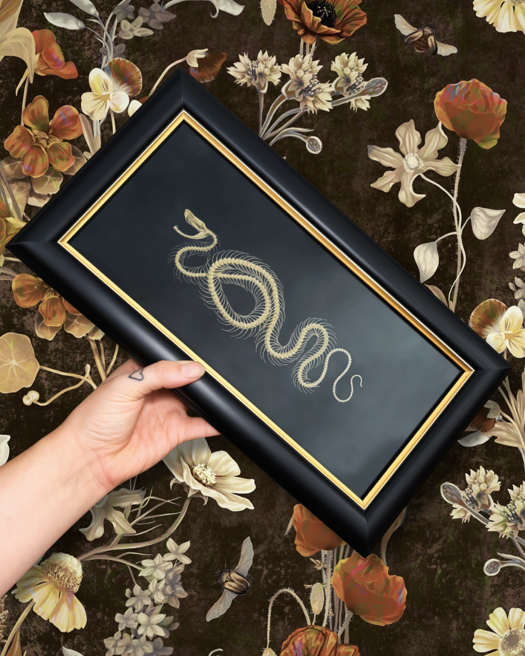 Displayed in a deep shadow box with gold trim around the edges, so if you’re looking for something simple but elegant, this will fit right into your decor.