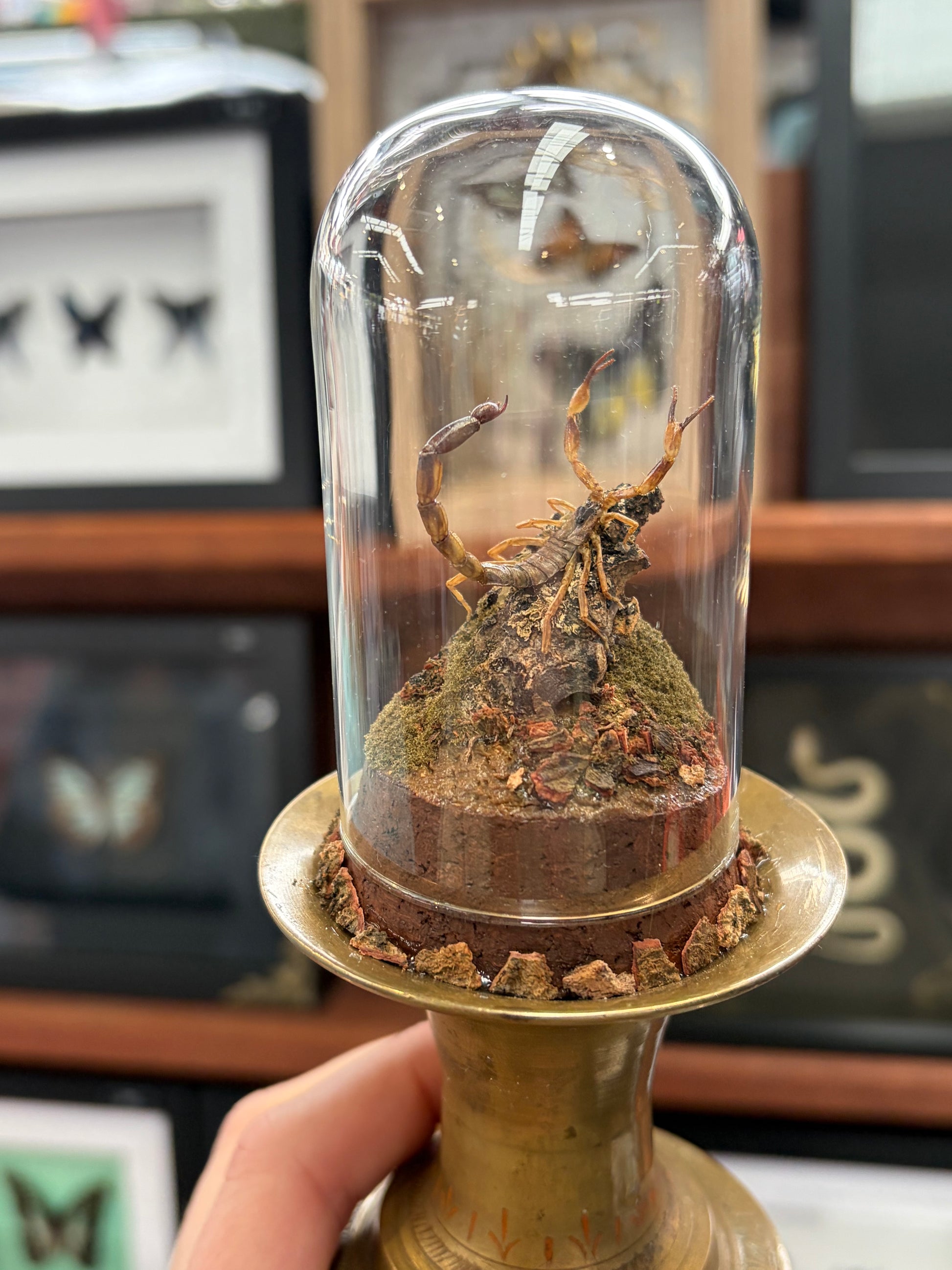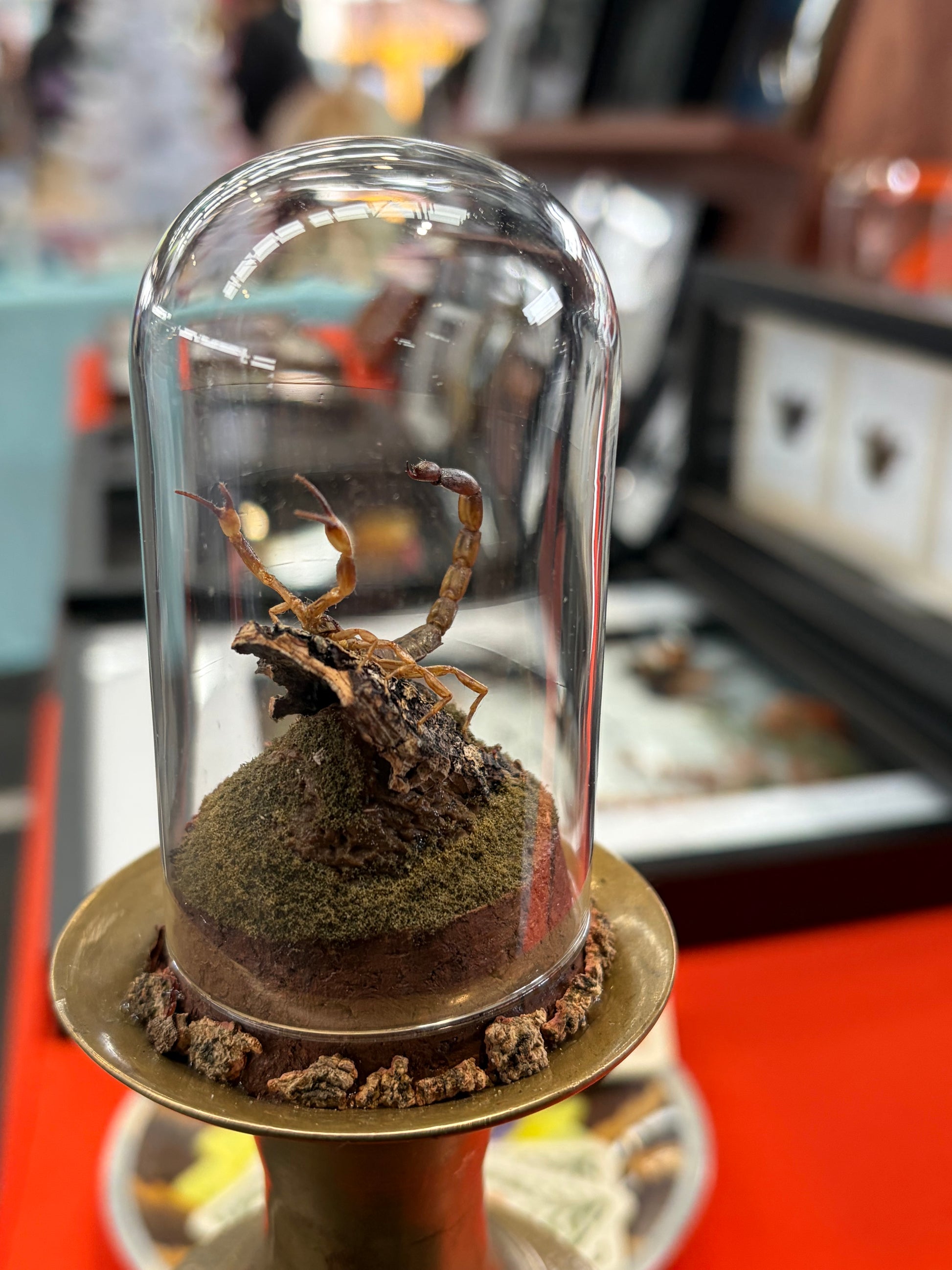 The scorpion has been pinned into position to be on the look out/attack & is on a life like diorama completely hand made by myself.